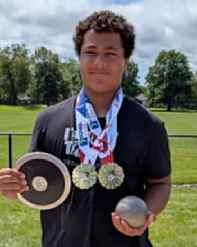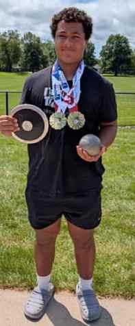 It was Malachi’s idea to sign up for the summer event, and he was grouped with other athletes in the 15–16 age bracket. The competition was tough, but Malachi rose to the occasion, winning gold in both the shot put and discus—an impressive achievement for a young man still early in his throwing career.