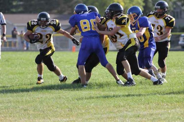 Before the varsity's overtime win at Benton Community, the V-S sophomores also won, defeating the Bobcats 24-6 in their season opener. Both teams hope to ring the victory bell this Friday when the Vikings host South Tama.