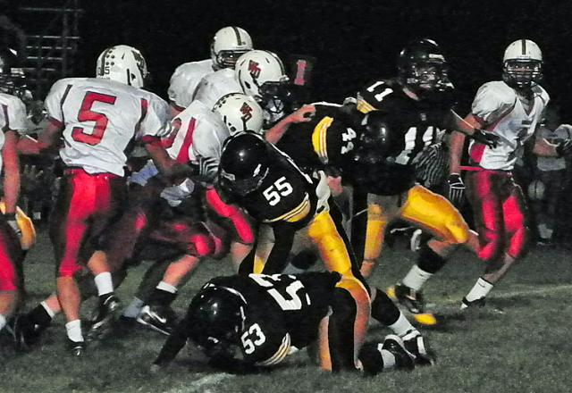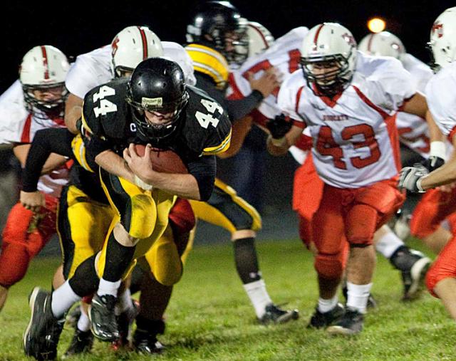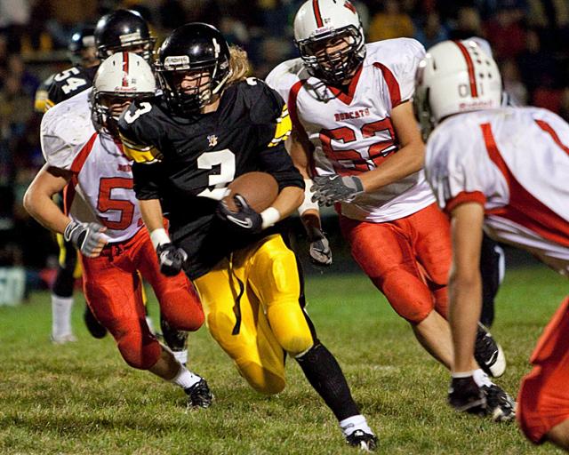 The Bobcats built a quick 14-0 lead, but the Vikings scored two touchdowns to tie the game at 14 at halftime. The Bobcats added 10 more in the third, but the Vikings also scored a touchdown, leaving the score 24-21 While the Vikings relied heavily on their running game, led by senior Gunner Tranel, they also moved the ball by passing later in the game. Two passes from Lincoln Riffey to Darren Charlier put the Vikes in scoring position, allowing Tranel to score one of his running touchdowns late in the third quarter.