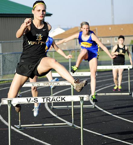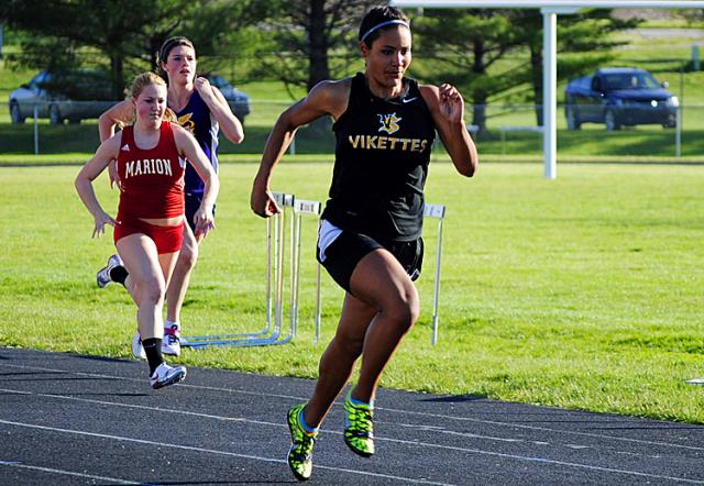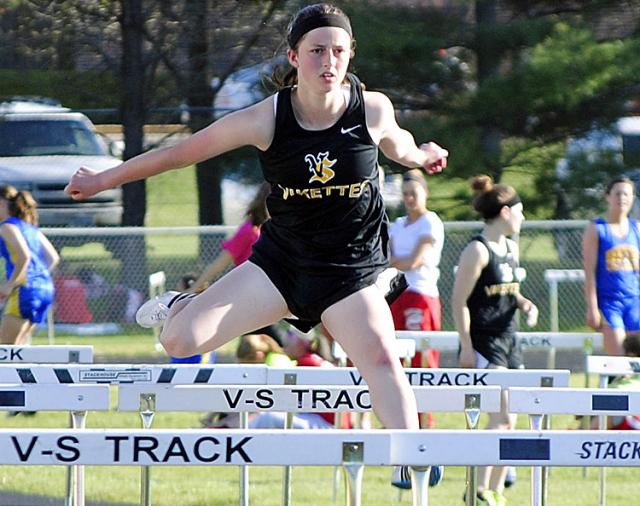 Cheyenne Barnes won the 100M and the 200M dash Tuesday during the Vikette Invite, leading the Vikettes to third place. Other VS winners included: Karley Kenney, 1500M; Maddy Springer, long jump; and three relay teams: 4 x 200, 400M shuttle hurdle and 800 sprint medley.