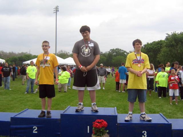 There were two Statewide competitions in the Des Moines area last weekend. While the one in Des Moines may have gotten more attention, Vinton-Shellsburg was well represented in Ames also. The Special Olympics of Iowa State Track and Field competition was held Thursday, Friday and Saturday. The weight of gold, silver and bronze made the bus ride lower, but the spirits of the team were high enough to keep it riding high on the way home. The team of 19 athletes brought back a total of 28 medals and 5 ribbons. Here’s how the trophy count shaped up: 15 gold, 8 silver, and 5 bronze. Ribbons were also awarded for 4thplace-1, 5thplace-3, and 6thplace-1. The Vinton-Shellsburg team will be a little lighter next year with the loss of team members Kim Moon, Rezia Kramer, John Larkin, and Dakota Gudanbauer. While those athletes will be missed, there is a strong crop of newcomers anxious to take their place.